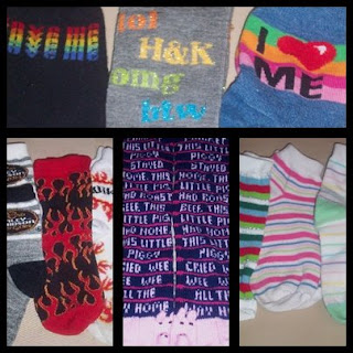 Wow. My socks are so boring. I have plain white ankle/crew socks and not much else. As you can see, I'm in desperate need of socks!